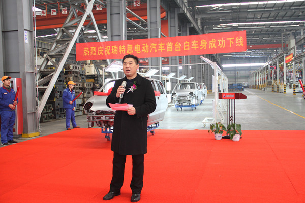 10:58分,瑞特思微電動(dòng)車首臺(tái)白車身下線儀式正式開(kāi)始,奇瑞公司、商用車公司領(lǐng)導(dǎo)分別介紹了瑞特思微電動(dòng)車市場(chǎng)情景和致辭祝賀;