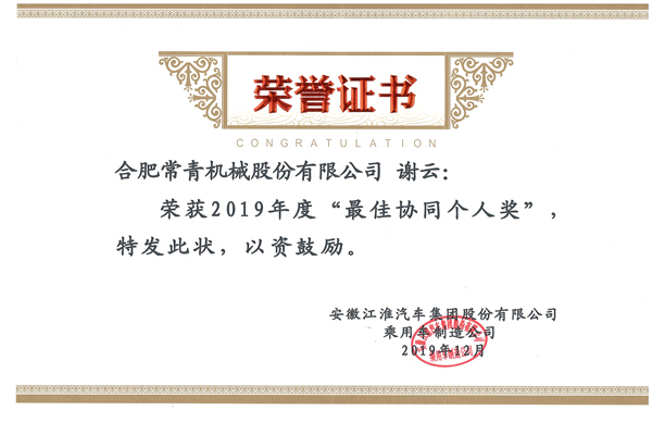 熱烈祝賀公司榮獲江淮汽車(chē)2019年度“優(yōu)秀供應(yīng)商”稱(chēng)號(hào)